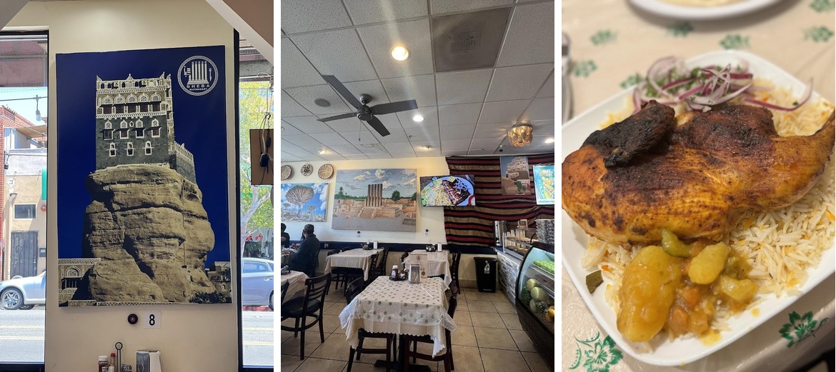 Sheba Restaurant on International Blvd in Oakland offers a rich Yemeni menu that delights East Bay food lovers. The menu features traditional dishes like Lamb Mandi and Chicken Haneeth, prepared with authentic spices and tender meat that practically falls off the bone. Their freshly baked Yemeni bread, fluffy with a delightful chew, pairs perfectly with hummus topped with lamb liver or chicken. You can enjoy an array of cultural platters such as the Sheba Six Mixed, which combines beef gallaba, ground beef, livers, and eggs, all topped with tahini for a satisfying meal.